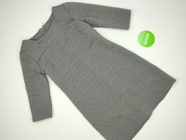 Sukienka dzianinowa w kolorze melanżowej szarości. - Fason: ołówkowy, dopasowany, długość za kolano/około midi - Rękaw: 3/4 - Dekolt: łagodnie zaokrąglony (łódka) - Zapięcie: dekoracyjny złoty suw...Stan: