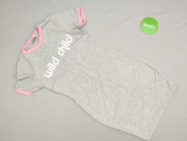 Na co dzieńSzara sukienka typu t-shirt z krótkim rękawem i różowymi obszyciami. Na przodzie znajduje się napis "wild child" w kolorze białym z różowym cieniem. Sukienka ma okrągły dekolt i jest wykonana z materiału przypominającego bawełnę, co zapewnia komfort noszenia. Idealna na co dzień, do noszenia w cieplejsze dni.