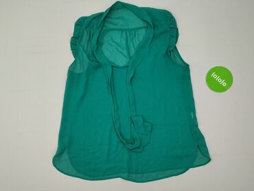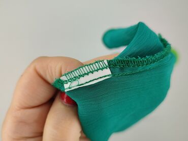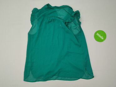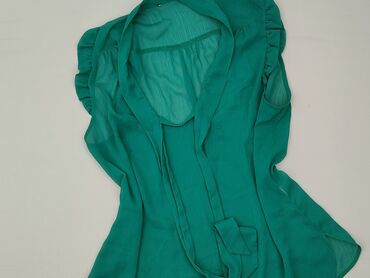 Bluzka damska bez rękawów w intensywnie zielonym kolorze. - Fason: prosty, lekko luźny; okrągły dekolt z przodu - Rękawy: krótkie skrzydełka z falbaną - Tył: głęboki dekolt w kształcie litery V z ...