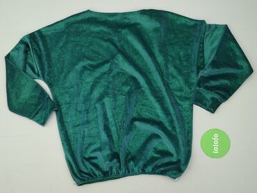Zielona bluza damska z długim rękawem. - Materiał: miękka, welurowa tkanina o delikatnym połysku, przyjemna w dotyku. - Krój: klasyczny, swobodny; okrągły dekolt; mankiety i dół wykończone szeroką ...Stan: