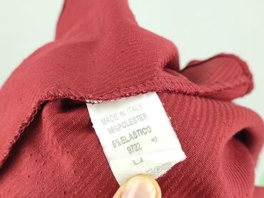 Damska koszula z długim rękawem, wzór geometryczny/optical art w pasy i fale. Kolorystyka: bordo/czerwień, czerń i krem. Zapinana z przodu na rząd jasnych guzików; mankiety również na guziki. Klasy...