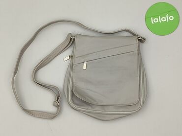 Torebka damska na ramię / crossbody w kolorze jasnoszarym. - Materiał: skóra ekologiczna o delikatnej fakturze - Klapa z metalową wstawką; zapięcie na suwak pod klapą (dodatkowe zabezpieczenie zaw...Stan:
