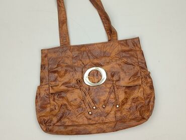 Torebka damska na ramię – brązowa - Materiał: skóra ekologiczna o lekko przecieranym wykończeniu - Kolor: karmelowy/brązowy - Pasek: szeroki, jednoczęściowy, z regulacją długości na klamrze - Zapi...Stan: