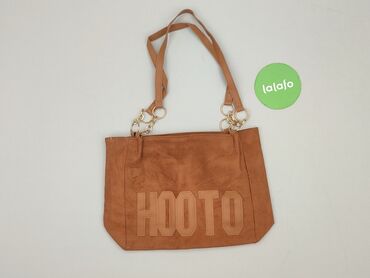UżywanyTorebka damska typu shopper w kolorze karmelowym z dużym napisem „HOOTO” na froncie.