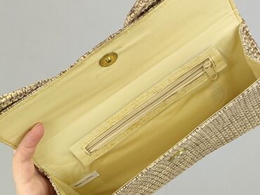 Mała torebka wieczorowa/kopertówka w kolorze złotym z krótkim łańcuszkiem. - Materiał: złota ekoskóra o lekkim, dekoracyjnym przetarciu/połysku - Zapięcie: klasyczny metalowy bigiel w kolorze sreb...