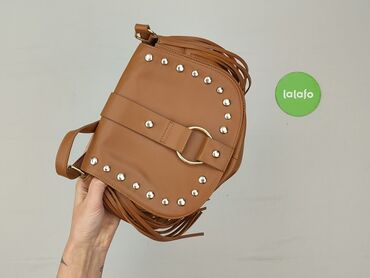 - Detale: metalowe nity w kolorze złota wokół klapki, długie frędzle po bokach