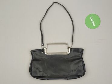 Czarna torebka damska BBlandigny - Materiał: skóra/eko-skóra w czarnym kolorze z fakturowanymi przeszyciami z przodu, gładka z tyłu - Ozdobne metalowe nity i klamry, złote logo na froncie - Dwa mi...