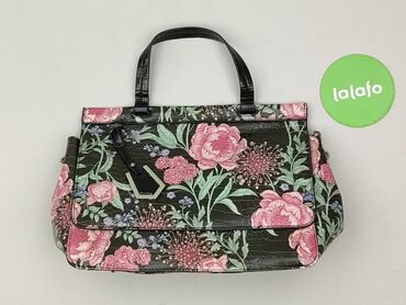 Torebka damska w kwiaty – model 2B002-19 - Materiał: tworzywo sztuczne (zewnętrzna tkanina o fakturze płóciennej), wnętrze z czarną podszewką. - Wzór: romantyczny, różowo‑zielone kwiaty na jasnym ...Stan: