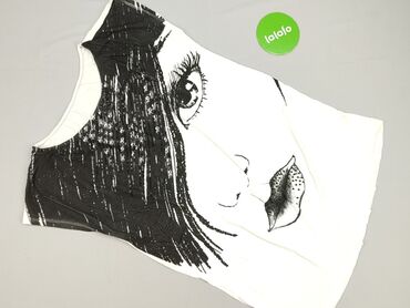 - Przód: duży graficzny nadruk twarzy kobiety; część czarnych pasm „włosów” zdobiona pionowymi rzędami czarnych cekinów, które dodają delikatnego połysku