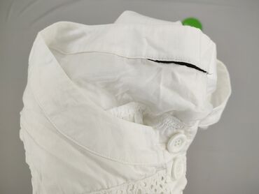 Biała tunika/koszula damska Okay, rozmiar 40. - Fason: lekko rozkloszowana tunika zapinana na guziki z przodu - Rękaw: krótki - Kołnierz: klasyczny - Pasek w talii z tego samego materiału (szlufki...