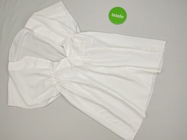 Biała damska tunika/bluzka z krótkim rękawem - Krój: luźny, z obniżoną linią cięcia z przodu, delikatnie wydłużony tył (zaokrąglony dół). - Dekolt: łagodnie łódkowy. - Rękawy: krótkie, lekko opada...