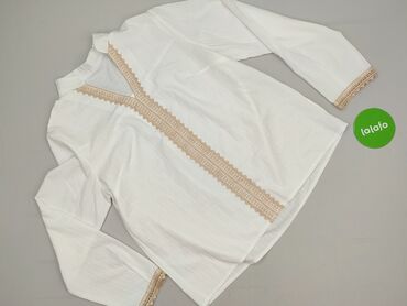 Ta biała koronkowa bluzka damska z długim rękawem, w rozmiarze M, to elegancki wybór. Bluzka charakteryzuje się okrągłym dekoltem i ażurowymi detalami, które dodają jej lekkości i subtelności. Idea...Stan:
