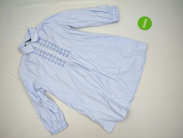 - Detale: geometryczne hafty w odcieniach błękitu wzdłuż listwy guzikowej oraz na mankietach; listwa z guzikami do połowy długości; marszczenia pod karczkiem z tyłu i przy talii nadające swobodny fason