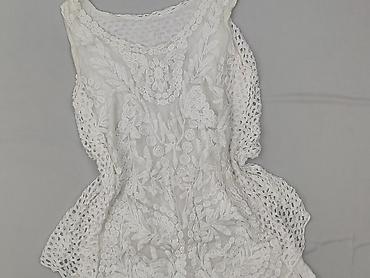 Biała ażurowa tunika/plażowa narzutka dla kobiety - Fason: prosta tunika bez rękawów, szerokie ramiączka, okrągły dekolt - Materiał: lekka, prześwitująca koronka/siateczka z geometryczno-roślinnym...