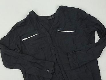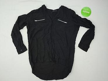 Czarna damska bluzka/tunika z długim rękawem - Marka: atmos&here (etykieta widoczna na zdjęciu) - Krój: luźny, lekko wydłużony – tunikowy - Dekolt: w serek (V) z krótką listwą guzikową na 4 guziki...