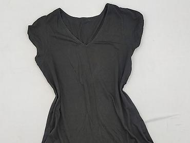 Czarna tunika/bluzka damska - Fason: wydłużony krój typu tunika, zaokrąglone dół z przodu i z tyłu - Rękaw: 3/4 z szerokim mankietem - Dekolt: okrągły - Rozmiar z metki: S (WOMEN) - Materiał: bawe...