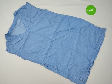 Sukienka/tunika jeansowa z krótkim rękawem - Fason: prosta, lekko dopasowana, zaokrąglony dół z delikatną falbanką - Wzór: marmurkowy/acid wash w odcieniach jasnego i średniego niebieskiego - Deko...Stan: