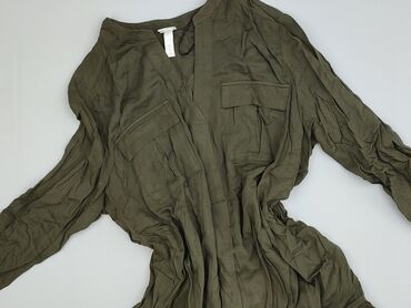 Bluzka tunikowa H&M - Kolor: khaki/oliwkowy - Krój: luźna tunika z zaokrąglonym dołem - Dekolt: rozpinany na kilka guzików (half-placket) - Rękawy: długie z możliwością podpięcia na pasek i guzicz...