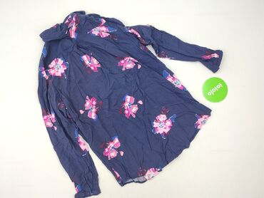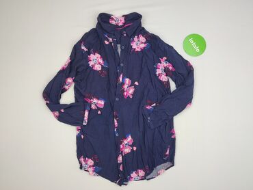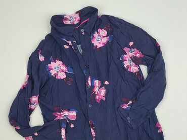 Granatowa koszula/tunika damska z długim rękawem i drobnym, kwiatowym nadrukiem w odcieniach niebieskiego. - Fason: zapinana na guziki z przodu, długa linia – do noszenia jako koszula lub lekka tu...