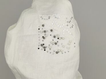 Biała tunika damska z ozdobnym dekoltem - Krój: lekko rozszerzana ku dołowi, z rozcięciami po bokach - Rękaw: 3/4 - Dekolt: w kształcie litery V - Detale: haftowane zdobienia i drobne perełki przy...