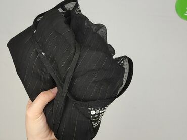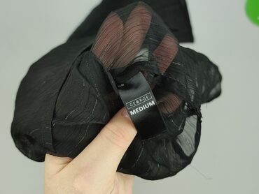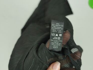 - Damska, czarna, lekko prześwitująca tkanina z delikatnymi pionowymi, srebrzystymi nitkami (98% poliester, 2% metalizowana przędza)