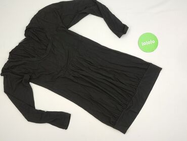 Czarna tunika/bluzka damska z miękkiej, elastycznej dzianiny. - Fason: dopasowana tunika o długości do połowy uda - Dekolt: głęboki w kształcie litery V z marszczeniem na środku, podkreślającym bi...