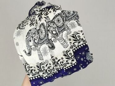 - Wzór: pasy w kolorach bieli i głębokiego granatu z ornamentalnymi słoniami oraz roślinnymi motywami