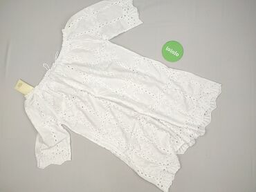 Lekka, biała tunika/bluzka boho z haftem - Krój: luźny, przewiewny; długość do bioder - Dekolt: w serek z troczkami do wiązania - Rękawy: 3/4 z delikatną gumką przy mankietach - Ozdoby: subtelny, ...