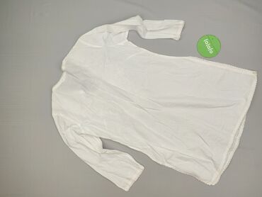Biała tunika/bluzka damska z długim rękawem. - Materiał: lekka tkanina o wyglądzie lnu/bawełny - Krój: wydłużony, lekko rozkloszowany dół, zaokrąglony brzeg - Zapięcie: rząd małych guzików z przod...