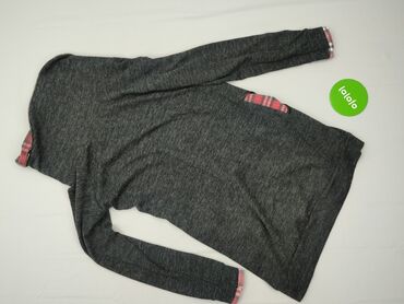 Długa bluza/tunika damska z kapturem - Kolor: czarny z szarymi akcentami - Fason: wydłużony tył (asymetryczny dół), długi rękaw, obszerny kaptur z szerokimi, szarymi taśmami - Detale: pionowa szar...