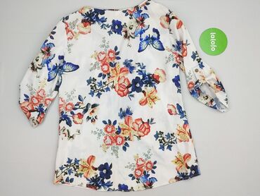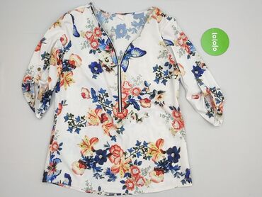 Biała bluzka damska bez rękawów. Wykonana z lekkiego materiału, charakteryzuje się luźnym krojem. Z przodu znajduje się barwny nadruk przedstawiający motyla na tle kwiatów. Fason bluzki zapewnia ko...Stan:
