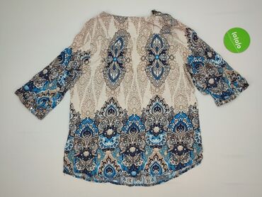 Bluzka damska WOMEN, rozmiar 42 - Materiał: 100% wiskoza (miękka, przewiewna tkanina) - Kolor: ecru/śmietankowy z jasnoniebieskim, drobnym nadrukiem roślinnym - Krój: luźniejsza tunika, dół le...