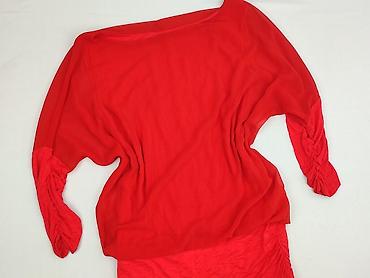 Czerwona sukienka/tunika MAGMAC dla kobiety - Fason: dopasowany, z długim rękawem - Dekolt: szeroki/łódkowy; możliwość efektownego opadania na jedno ramię - Detale: ozdobny złoty łańcuszek przy de...