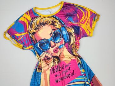 - Wzór: wielokolorowy nadruk w stylu komiksowym – na przodzie duża grafika kobiety w okularach i z headsetem; tył w abstrakcyjne, intensywne motywy. Kolory: żółty, różowy, niebieski, fioletowy, pomarańczowy.