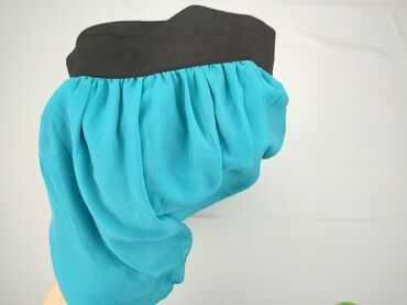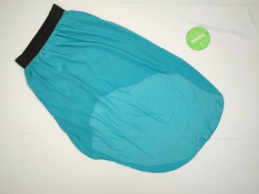 Turkusowa spódnica z czarnym, elastycznym pasem. Model z lekkiej, zwiewnej tkaniny z asymetrycznym dołem (przód krótszy, tył dłuższy), z miękką podszewką zapewniającą komfort noszenia. W pasie szer...