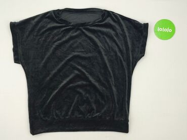 Bluzka damska oversize, czarna, z mieszanych materiałów - Krój: luźny, oversize, z opuszczoną linią ramion - Dekolt: okrągły - Rękaw: krótki - Projekt: górna część z dzianiny, dół i wstawki z lekk...Stan:
