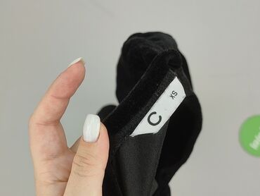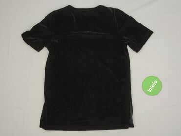 Bluzka damska Sinsay - Rozmiar: XS - Krój: dopasowany T‑shirt z krótkim rękawem - Kolor: czarny z kontrastowym, białym kołnierzykiem typu „peter pan” - Wzór/materiał: dzianina z welurowymi, wypukł...