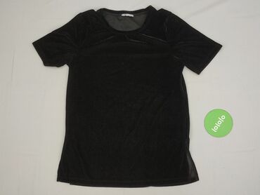 Czarna damska bluzka welurowa z dekoltem w serek - Krój: luźniejszy T-shirt z krótkim rękawem - Materiał: miękki, przyjemny w dotyku welur/aksamit - Kolor: głęboka czerń, lekki połysk - Dekolt: V-...