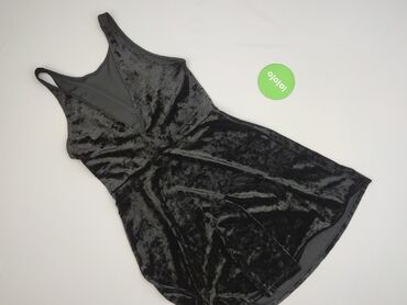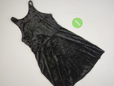 Czarna sukienka damska na ramiączkach, rozmiar M. - Fason: dopasowana, mini; dekolt w kształcie litery V, cienkie podwójne ramiączka - Z boku dekoracyjne, wielokrotne paski/wycięcia; z tyłu zamek ...