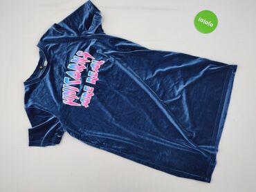 Czarna sukienka/tunika z krótkim rękawem i okrągłym dekoltem. Przód pokryty dużym, kontrastowym, białym nadrukiem w stylu graffiti z hasłami „PARIS” i „LO…”, tył i rękawy gładkie, czarne. Dopasowan...