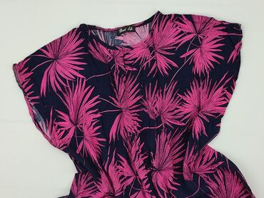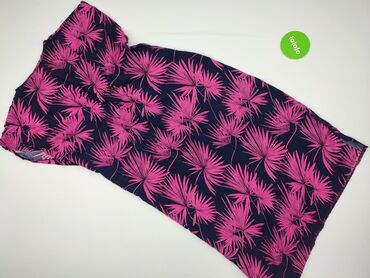 Sukienka damska z motywem tropikalnym, idealna na letnie dni. Posiada rękawy typu falbanka i dekolt w kształcie litery V, co nadaje jej lekkości i zwiewności. Wzór w liście i kwiaty w odcieniach zi...