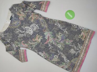 Sukienka Reserved – rozmiar EU 36 (UK 8), Made in Europe. - Wzór: intensywny, wielobarwny motyw kwiatowy na granatowym tle. - Fason: długość do kolan/midi, dopasowana w talii, lekko rozkloszowany d...