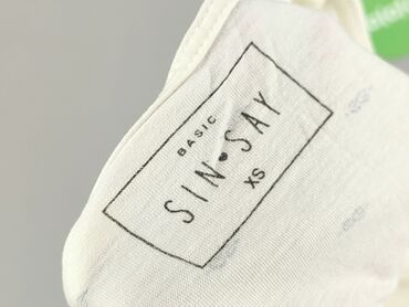 Koszulka damska marki Sinsay w kolorze białym, z krótkim rękawem i okrągłym dekoltem. Na przodzie widnieje czerwony nadruk "TALKING ALWAYS HELPS", a na karku czarny napis "SEX EDUCATION". Koszulka ...