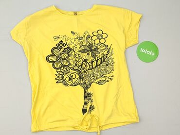 Żółta damska koszulka z nadrukiem – QS by s.Oliver - Rozmiar: S (na metce) - Krój: dopasowany, z krótkim rękawem - Dekolt: w kształcie litery V - Materiał: cienka, miękka dzianina bawełniana (jedn...