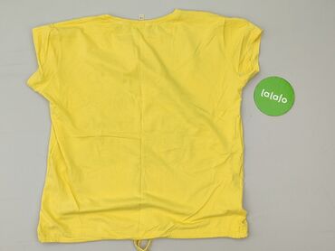 Żółta koszulka damska z krótkim rękawem - Rozmiar: M (metka “Fashion M”) - Materiał: 95% bawełna, 5% elastan – miękka, przewiewna tkanina z lekkim stretchem - Kolor: intensywnie żółty z białymi la...