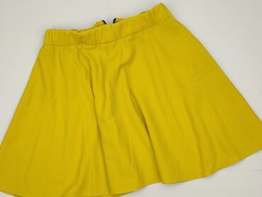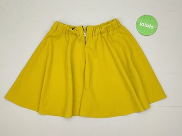 Spódnica damska Moda Polska – Warszawa - Kolor: intensywny żółty - Fason: rozkloszowana, średniej długości; dół lekko zaokrąglony - Zapięcie: pełny rząd guzików z przodu (plastikowe, w kolorze tka...Stan: