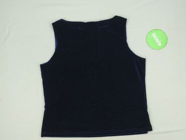 Damska bluzka bez rękawów w kolorze granatowym. Charakteryzuje się okrągłym dekoltem z rozcięciem w kształcie litery V, dodającym subtelnego akcentu. Bluzka wykonana jest z poliestru, co zapewnia j...