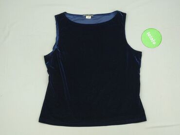 Bluzka bez rękawów Ellen Tracy - Kolor: granatowy - Rozmiar na metce: L - Fason: bez rękawów, okrągły dekolt z małym złotym guzikiem; przód z asymetrycznymi zakładkami i kopertowym efektem, subtel...