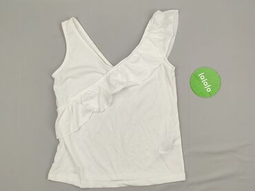 Biała damska bluzka/tank top na ramiączkach z koronką. - Krój: luźny, bez rękawów, z wycięciem typu racerback. - Przód: dekoracyjna listwa z czterema guzikami. - Tył: w całości z delikatnej, kwiat...