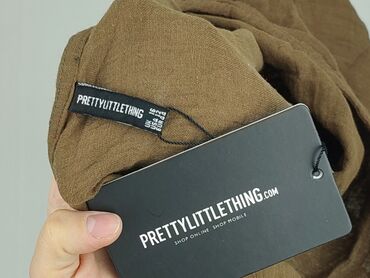 Krótki top damski marki PrettyLittleThing, wykonany z czerwonego materiału. Dekolt okrągły, rękawy krótkie. Design topu wyróżnia się asymetrycznym połączeniem dwóch wzorów: jednolita czerwień po je...